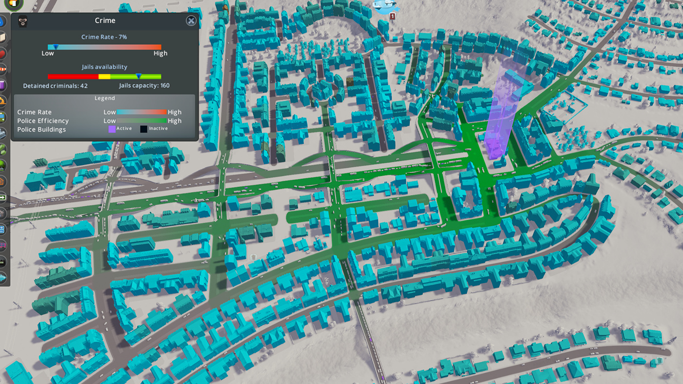 On the other hand, the mechanics imply that patrols are what reduce risks. Given the inspiration for the game - the Impressions city-builders - not doing so wouldn't keep within the "walker" spirit. However, it's interesting that the opposite is closer to the truth in real life regarding crime.